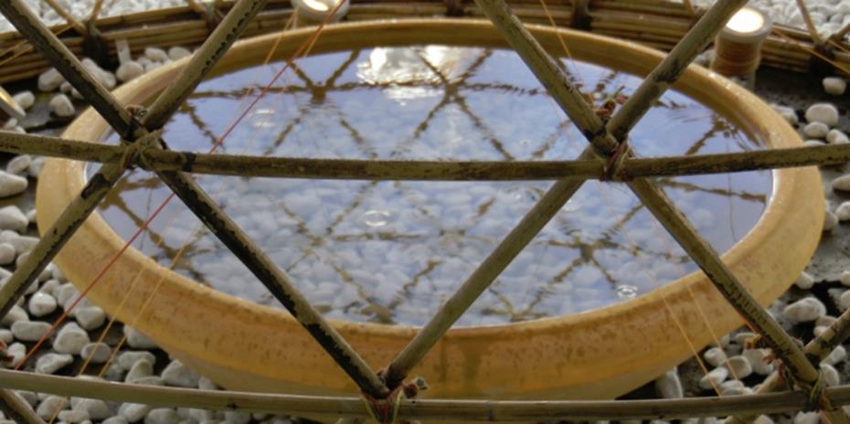 와카워터의 외형을 이루는 골풀 줄기의 프레임은 강한 바람에도 와카워터를 지지하면서, 공기가 잘 통하는 구조를 가진다.